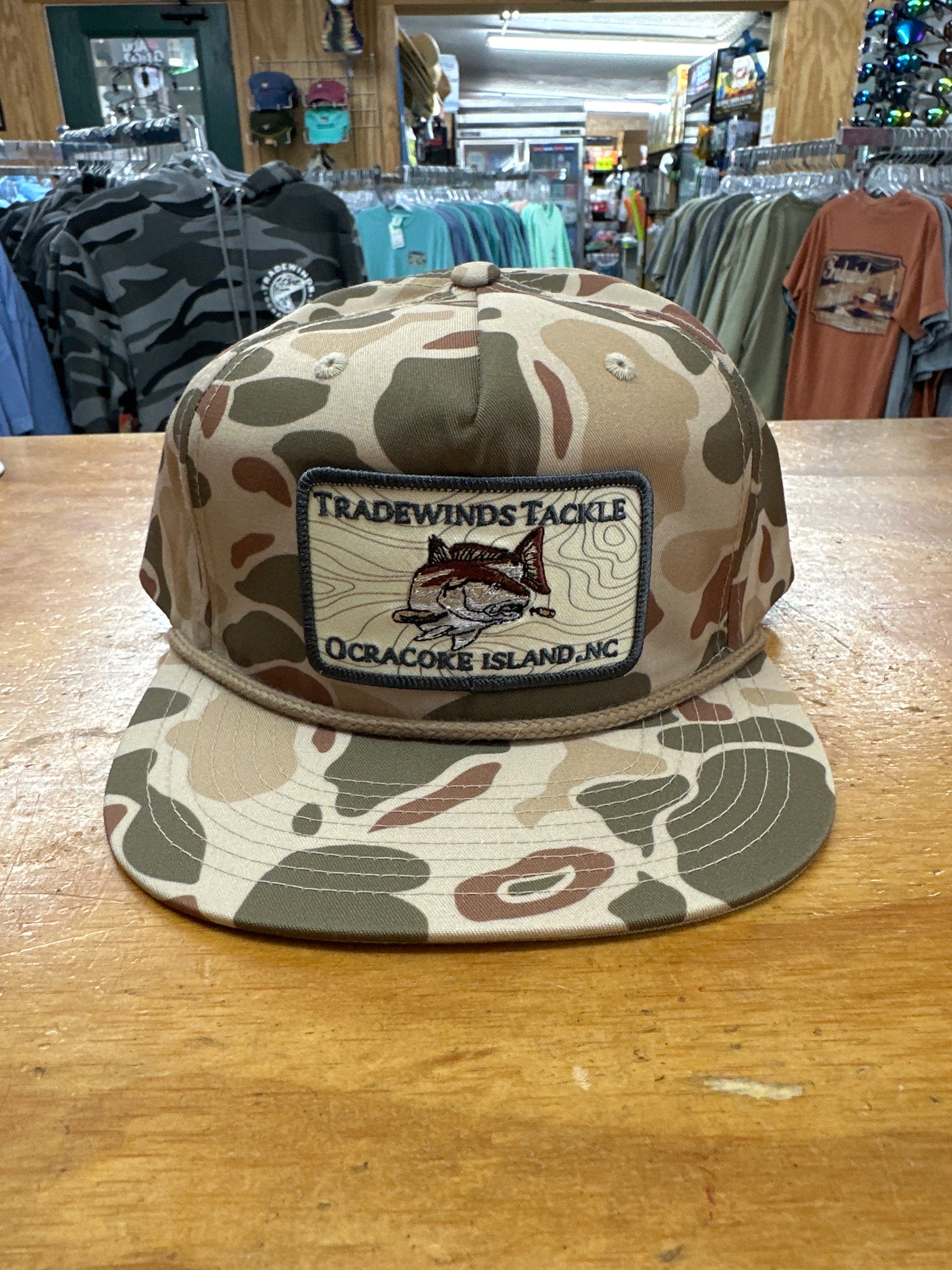 A Richardson 256P in the perfect harvest duck camo pattern, in a polyester twill with a solid back, snapback closure and a flat bill.